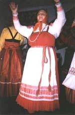 фотография женщины в народном костюме. Непроизвольно полученная поза женщины