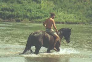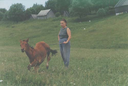 Anya, a former art historian from the Pushkin Museum, now breeds and trains horses - Trakehners and Trakehner-Thoroughbred crosses - and ponies. She takes experienced equestrians for brisk rides through the countryside and gives lessons to children on the ponies.