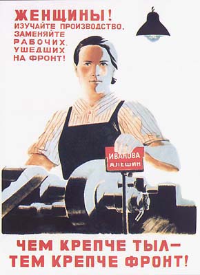 Женщины, женщины, женщины... На заводах, в госпиталях, на транспорте, в поле. Уже в первые дни войны они заменили ушедших на фронт мужей и братьев, взяли в свои руки производство военного снаряжения, снабжали фронт не только военной техникой, но и концентратами, хлебом, обмундированием. Советские женщины в тылу стали боевым резервом действующей армии. Рабочий день длился по 10 – 12 часов, о выходных и не вспоминали. Простое русское слово «надо» вдруг приобрело глубокий смысл. С него начинался теперь всякий разговор.