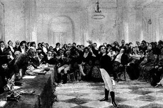 На середину зала вышел 15-летний Саша Пушкин и начал читать свои "Воспоминания в Царском Селе". Читал Пушкин с необыкновенным воодушевлением. Как вспоминал позже друг юного поэта Иван Пущин:"Мороз по коже пробежал у меня". Державин был поражен, как мог 15-летний мальчик создать такое совершенное по форме и содержанию стихотворение? И когда несколько позже на парадном обеде Разумовский говорил отцу поэта, Сергею Львовичу: "Я бы желал, однако же, образовать сына вашего в прозе...", то Державин с жаром сказал: "Оставьте его поэтом." |