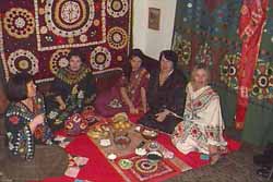 в другом - уголок таджикских жениха и невесты. Прямо на вас выходит население